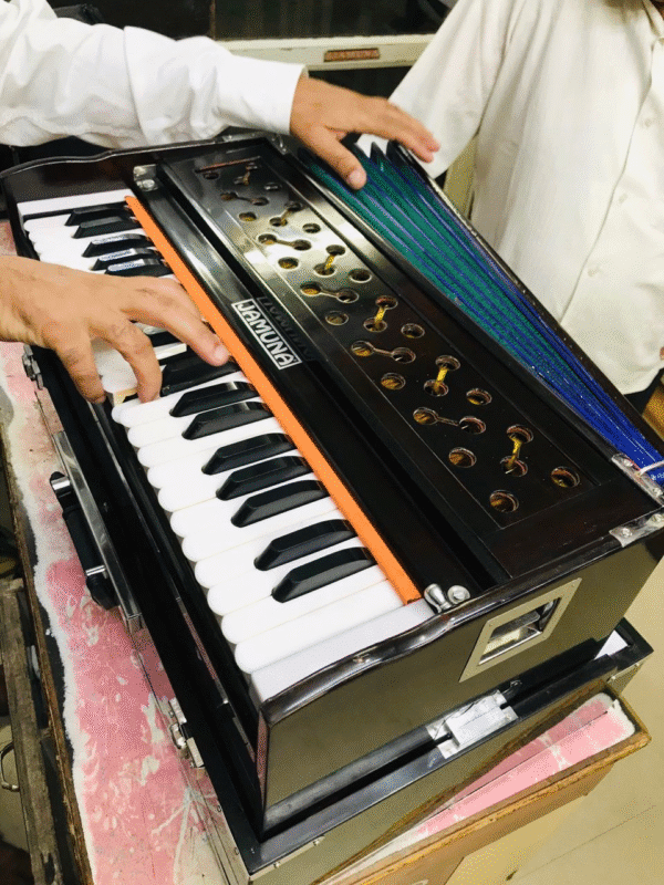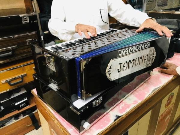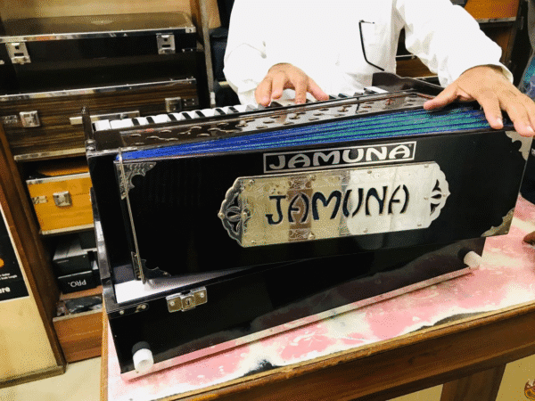 Experience the rich sound and fine craftsmanship of the JAMUNA® Folding Portable Harmonium, designed for professional musicians who seek quality and portability. Built with 2-line Bass Male JAP Premium Reeds and a Khardi kangi vertical reed-board, this harmonium delivers a warm, resonant tone ideal for performances and practice. Featuring 7 folds of smooth bellows (Pakha), 3.5 octaves (Saptak), and left-side coupler keys, it ensures versatility and enhanced sound depth. Crafted from the best quality seasoned wood with an excellent polished finish, this harmonium combines durability with elegance. A trusted name since 1936, JAMUNA® guarantees reliability, tradition, and superior musical performance.
