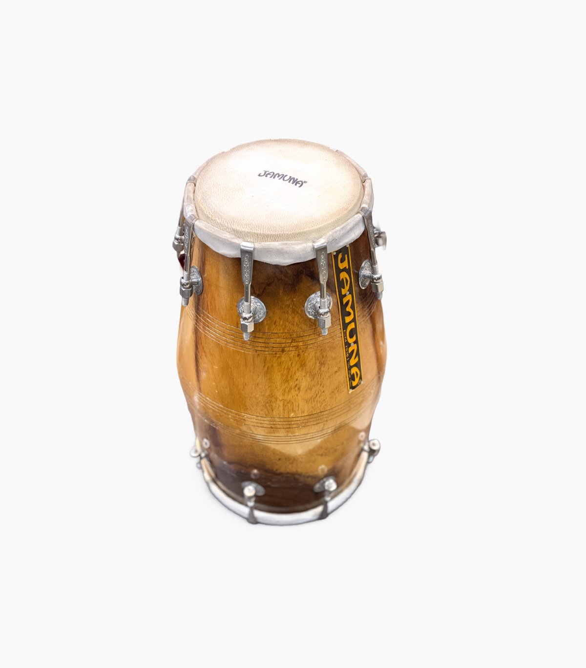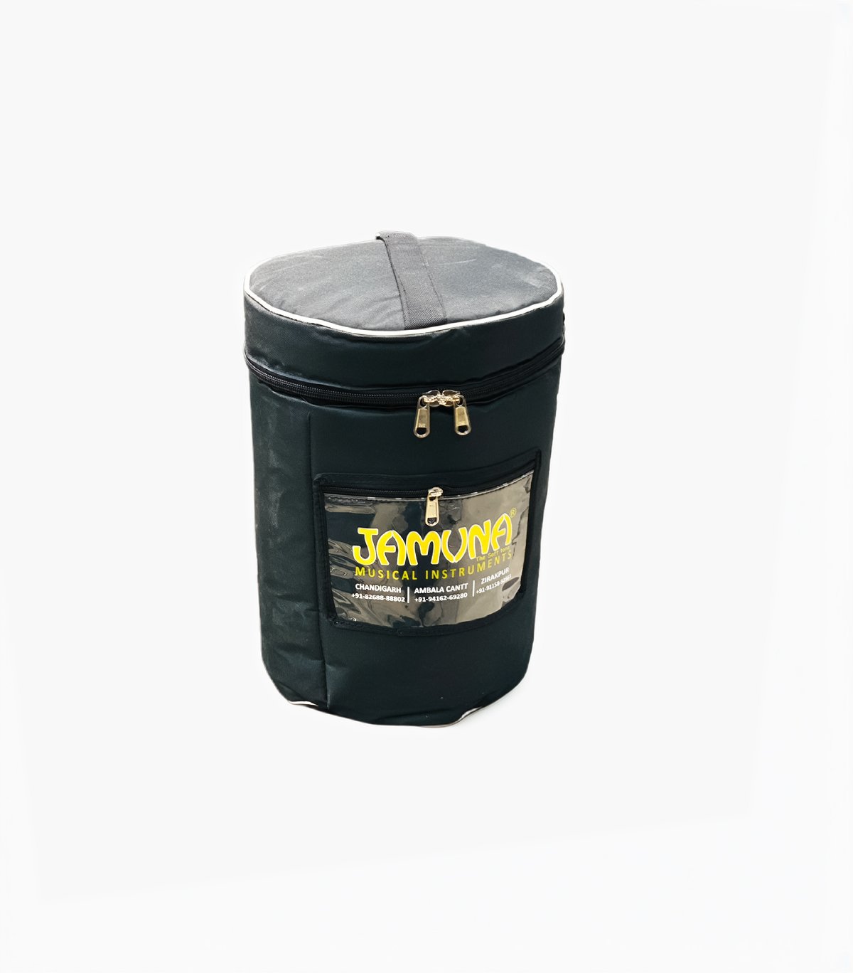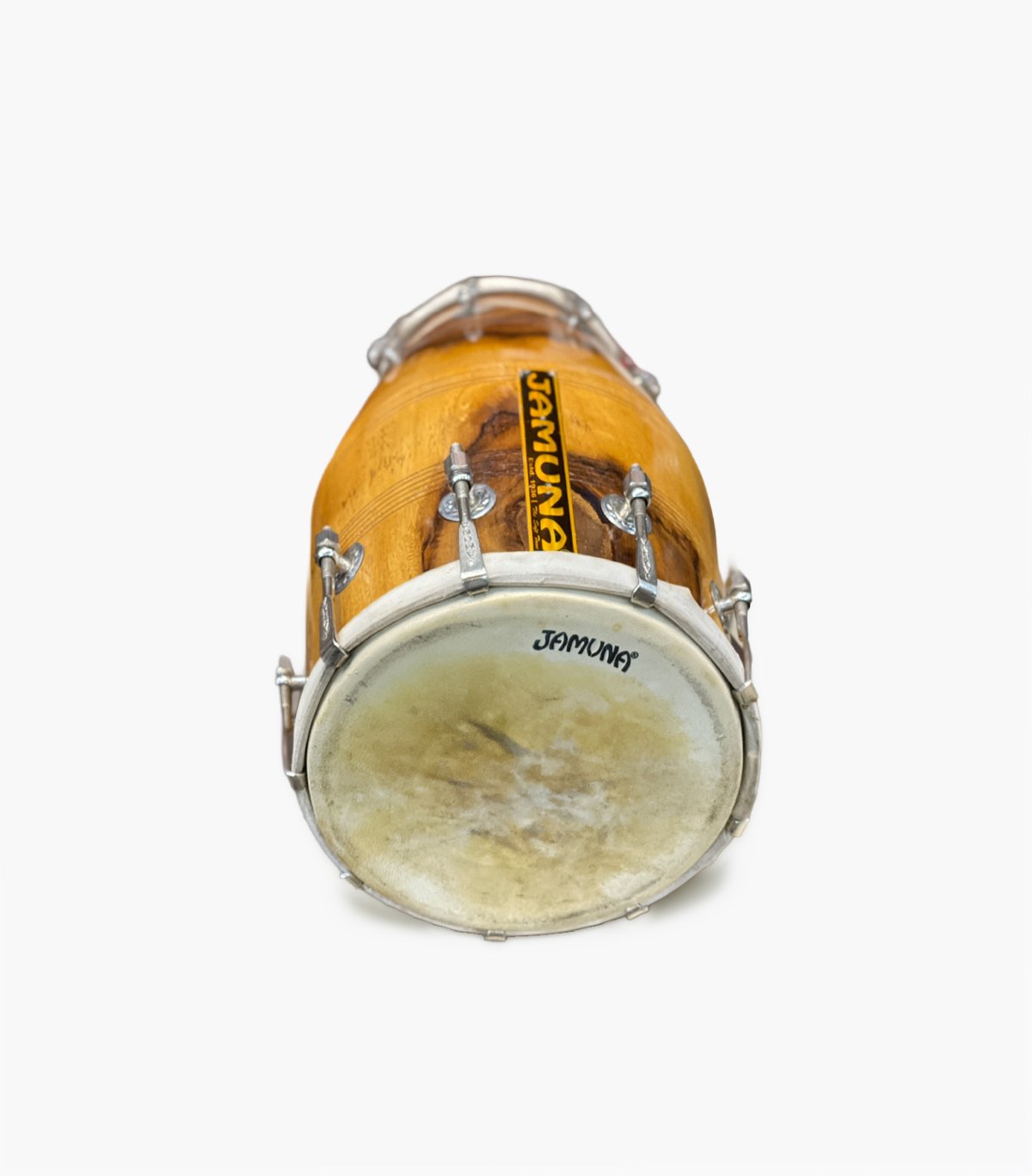 Premium Jamuna Dholak crafted from seasoned Sheesham wood with a natural finish and heavy-duty build. Featuring high-quality leather, 18 professional nut bolts with special bronze double fittings, it delivers rich and powerful sound, perfect for studio recording and professional use. Comes with a free padded bag for safe storage and easy portability.